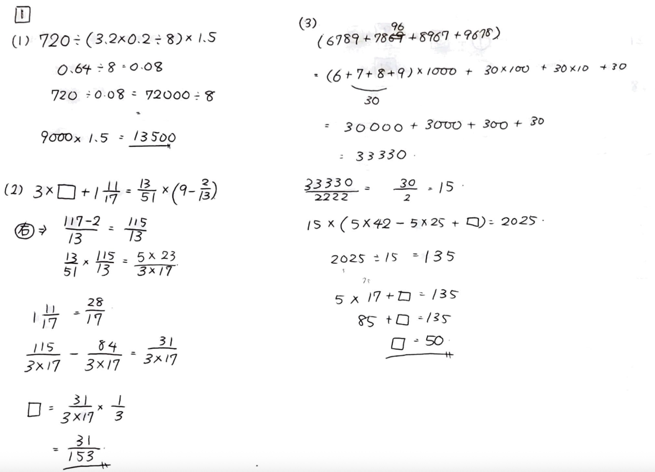 まず計算間違いが多いことと、正答率の高い問題で時々失点していることに因りそうです。特徴としては計算式の省略や図をかいてしっかり思考することができていないようでした。